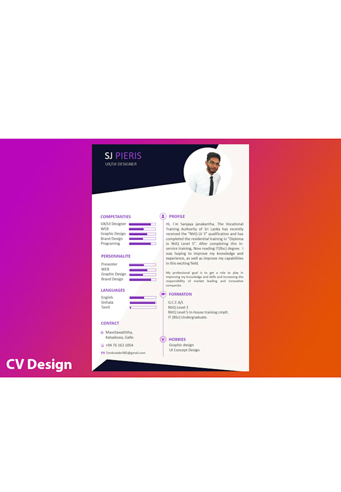 -The final deliverable can be provided look and feel and Professional look in cv design.